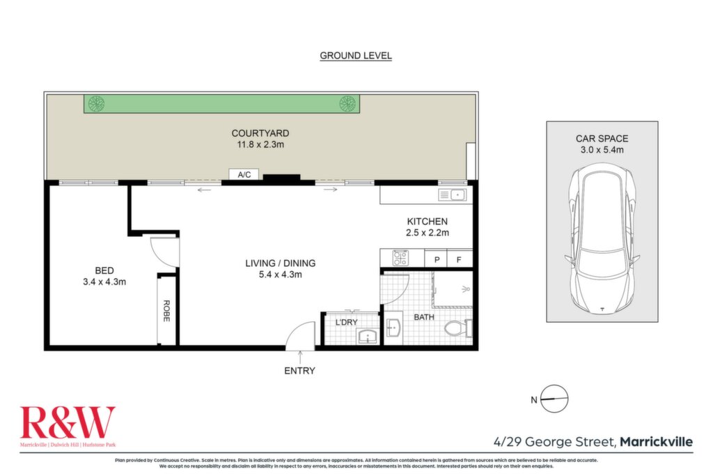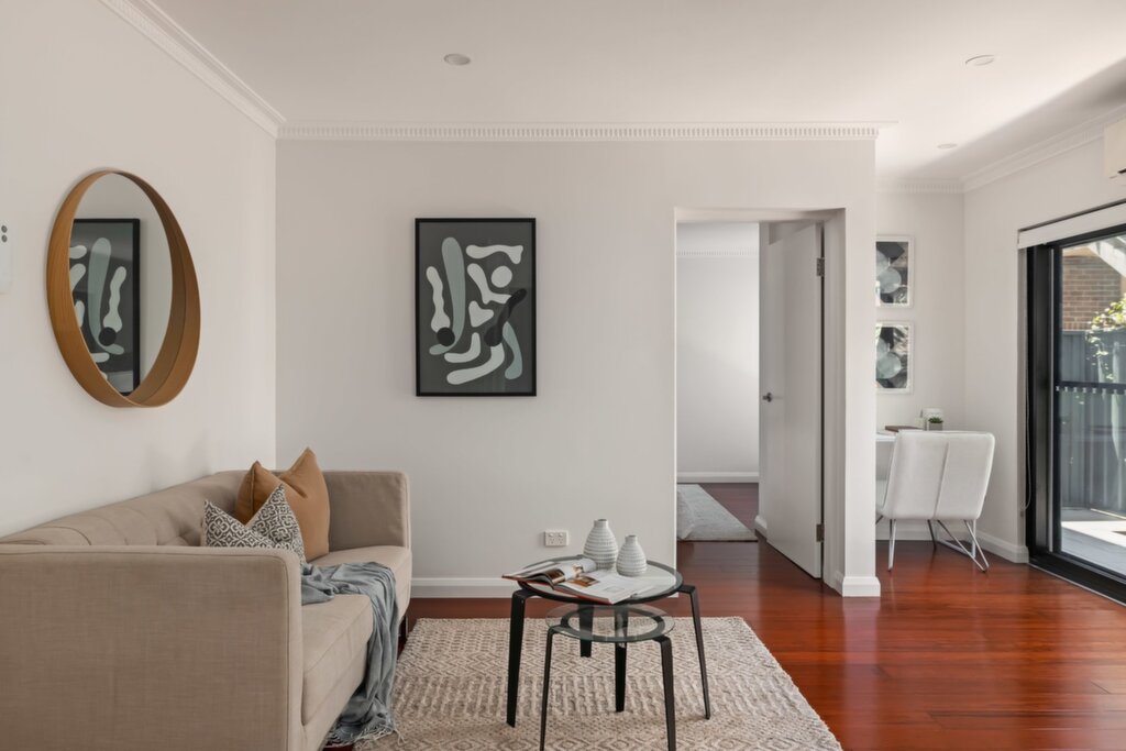 Comprises one double bedroom with built in robe Stunning solid timber floorboards throughout Generous courtyard across the entire length of the apartment Generous open plan lounge and dining spaces Scope to create your own extra office nook Contemporary kitchen with stone benches and dishwasher Big bright beautiful bathroom and internal laundry facilities Registered car space on title that directly accesses the street Pet friendly building subject to owners corporation Security intercom and reverse cycle air conditioning included Superb location near to Marrickville Road shops and fabulous new Library Marrickville Oval and Lawn Tennis club also very close by In the catchment zone for Wilkins Public School (Opportunity Class)
