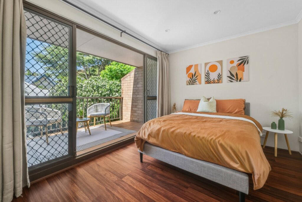 Well-maintained, solid brick boutique block of only 8 Open plan living/dining offering superb outdoor flow + a/c Sun-drenched, oversized private courtyard + relaxing spa Modern kitchen with plenty of cupboard space + dishwasher Two upper-level bedrooms, main has built-in robe and balcony Stylish bathroom with separate bath and shower Additional w/c downstairs for extra convenience Beautiful and sturdy timber floorboards throughout Spacious internal laundry + linen cupboard and under stair storage Single carport conveniently located outside the front door Additional extra car space just a few metres from the front door Low maintenance lifestyle opportunity in excellent locale Suitable for executive couples, small families, downsizers + astute investors Close to shops, schools, cafes, parks, walking tracks + all forms of public transport