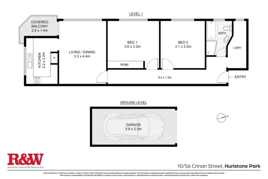 Offers two bedrooms (main with built in robe) Small security complex of only ten apartments Top floor position at the very quiet rear of the building Only one other neighbour on your floor and one common wall Sunny north west facing lounge flowing onto an undercover balcony Contemporary kitchen with dishwasher and pleasant outlook Pretty parquetry tiles throughout and brand new carpet in bedrooms Lovely large bathroom with separate tub and shower Rear lane access to lock up garage Internal laundry with loads of extra storage space Pet friendly community subject to application to Owners Corporation Super convenient position near all shops, parks and new Metro station 200 metre (3 mins) walk to trains