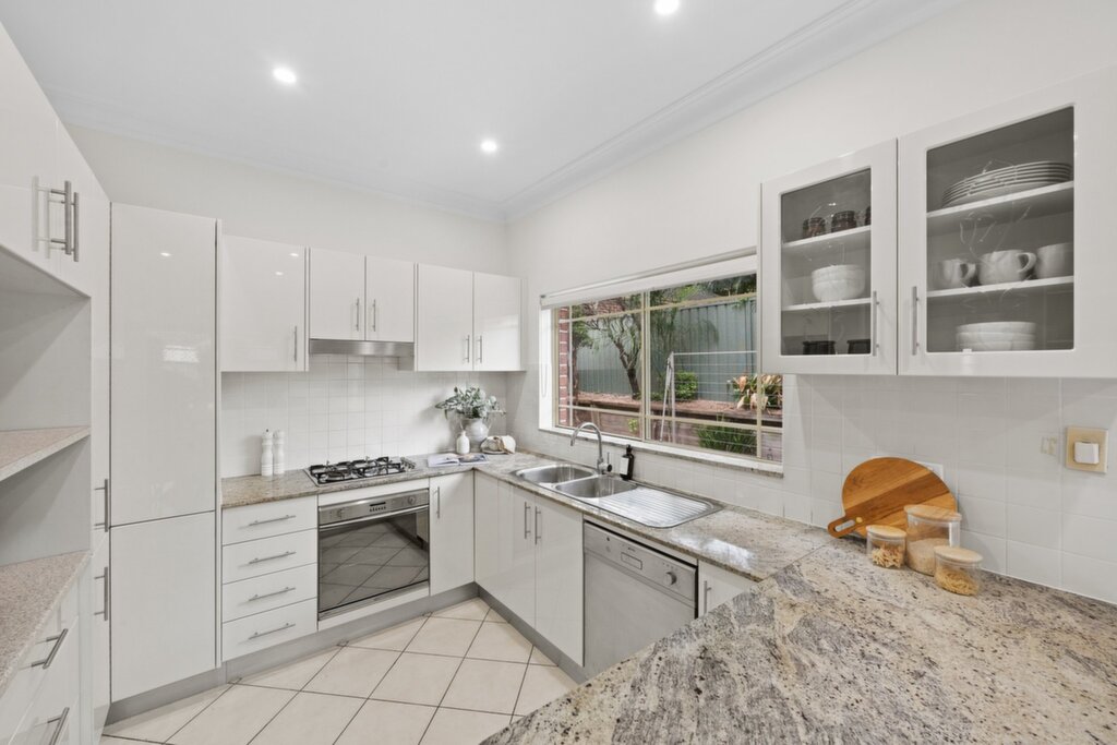 At the heart of the home, the superb granite kitchen overlooks the sunny gardens and connects to two separate courtyards. Equipped with premium Smeg stainless steel gas appliances and dishwasher, it's perfectly designed for both everyday living and entertaining.